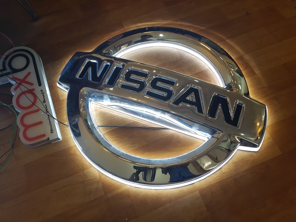 Logo NISSAN hút nổi mạ crom xuyên đèn