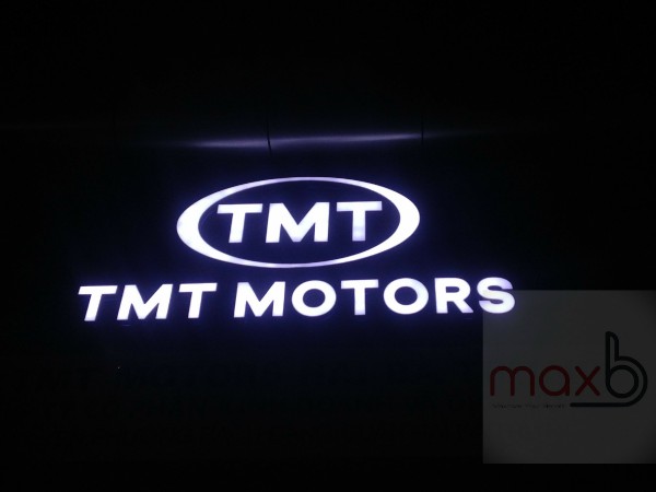 Logo TMT MOTORS sáng trắng vào ban đêm