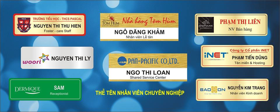 Ngày nay,biển tên nhân viên không còn xa lạ với chúng ta,dù đi bất cứ đâu,vào bất cứ cửa hàng,doanh nghiệp,công ty nào chúng ta cũng nhìn thấy biển tên nhân viên trên áo của mỗi công ty.