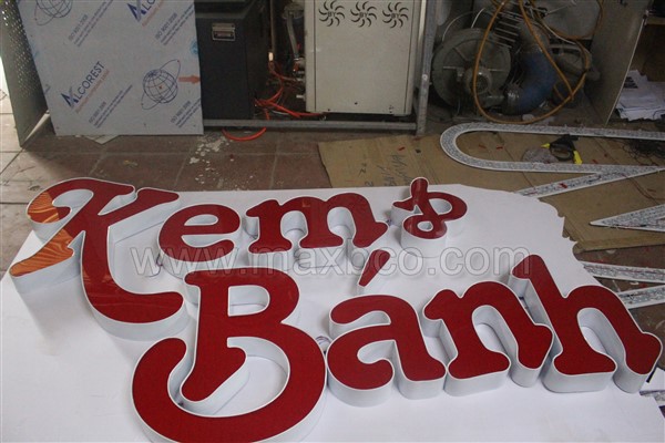 Mẫu biển quảng cáo của một cửa hàng KEM & BÁNH với font chữ sáng tạo